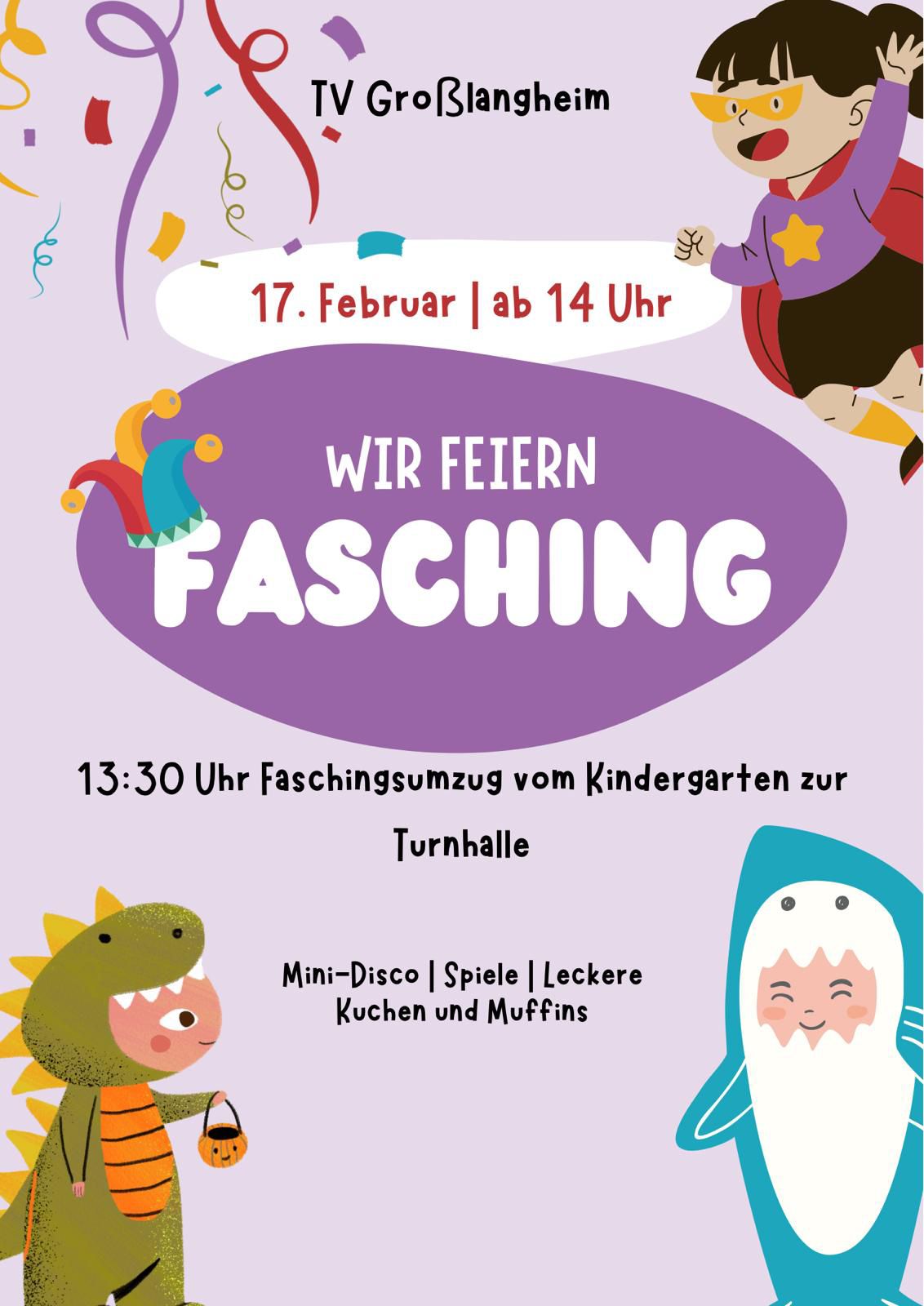 - 13:30 Uhr Faschingsumzug vom Kindergarten zur Turnhalle
